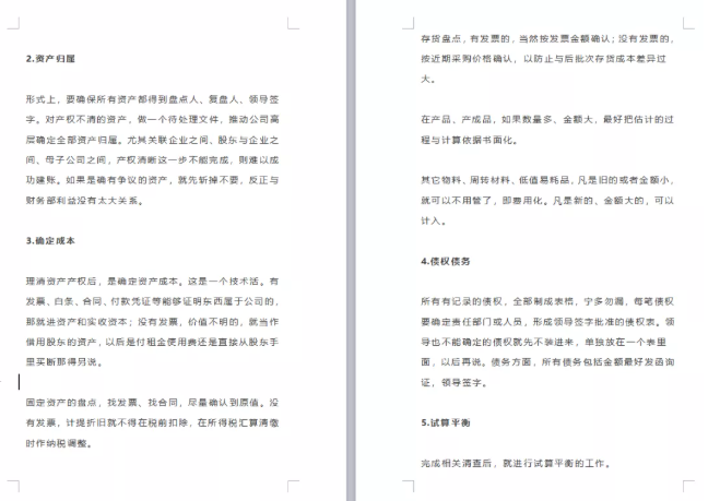 财务清理步骤: