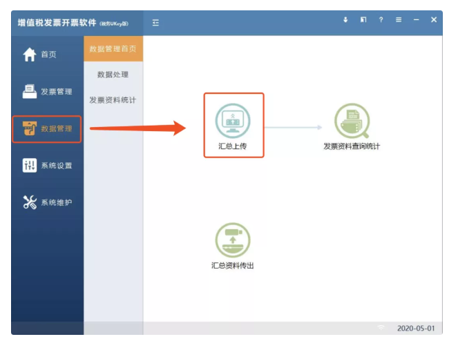 (1)系统自动进行上报汇总(或手工抄税数据管理-汇总上传-上报汇总)